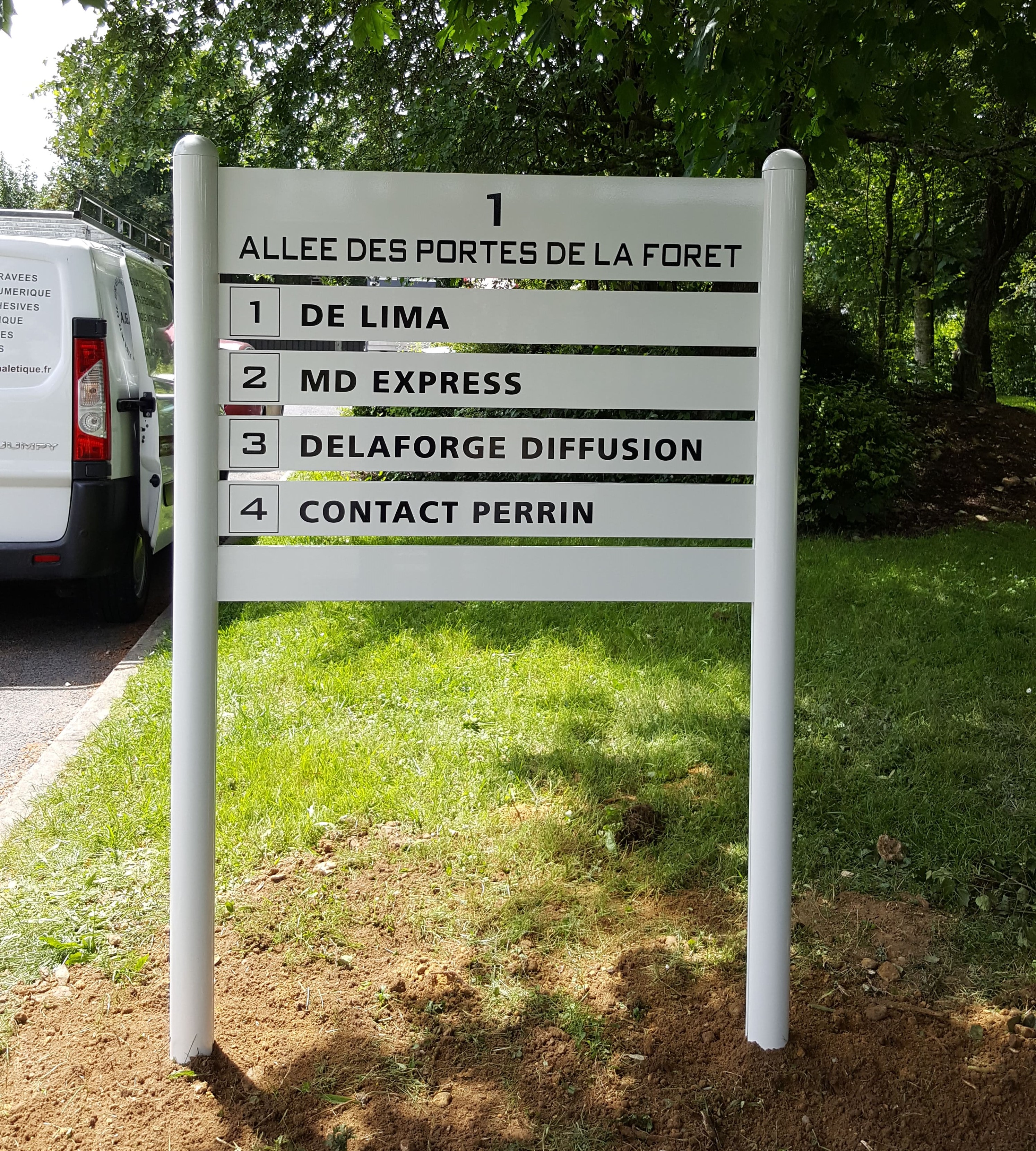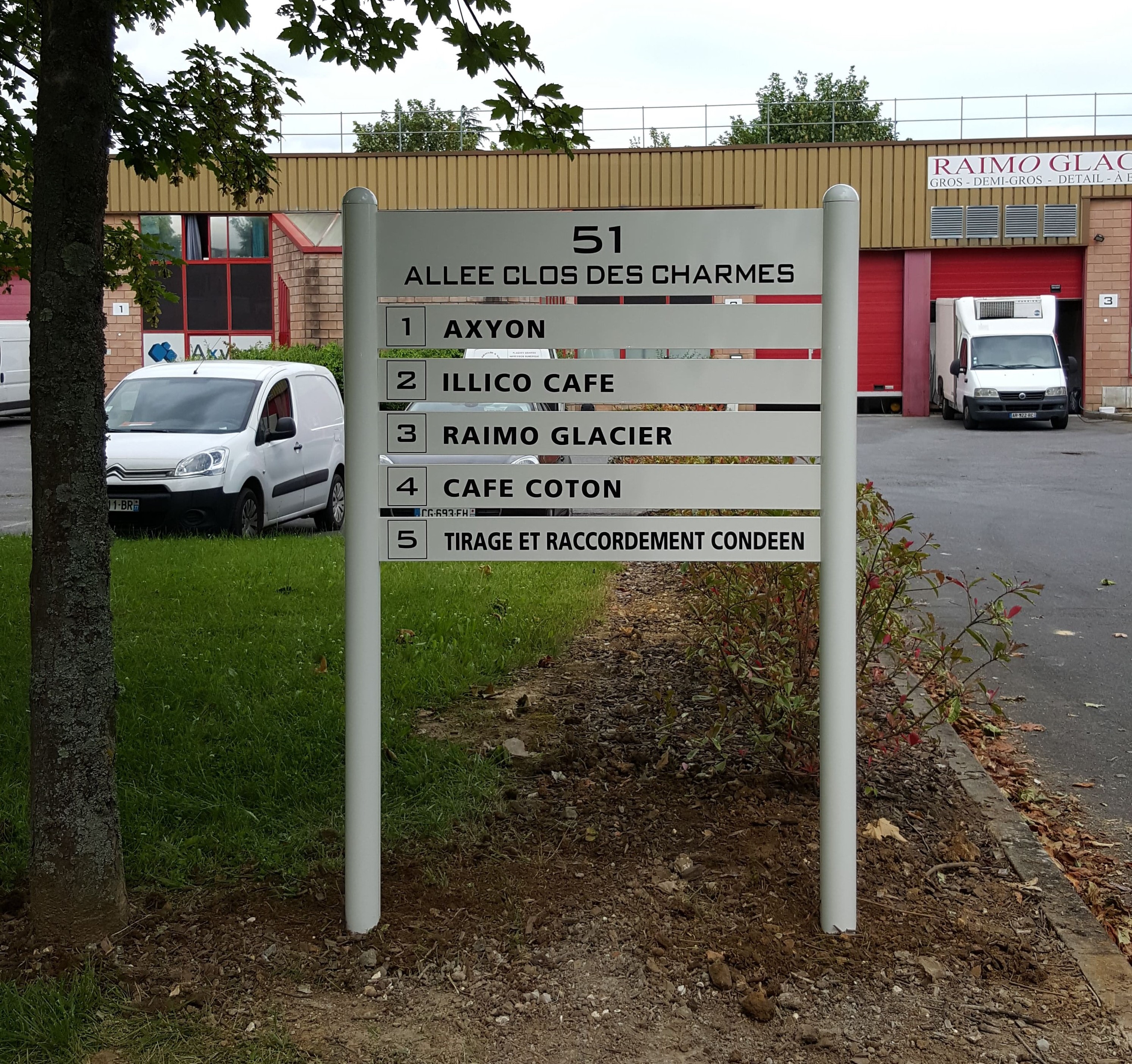 Nous vous proposons une large gamme de signalétique extérieure : totem, panneau, kakémono, caisson lumineux ou non, tôle laquée, plaque de parking, impression numérique, vinyle adhésif, etc.)